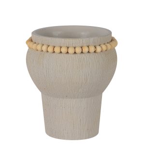 MACETERO CERÁMICA BLANCA C/BOLAS MADERA