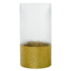 JARRÓN CRISTAL TRANSPARENTE BASE DORADA