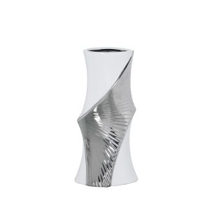 JARRÓN CERÁMICA BLANCO/PLATEADTEADO