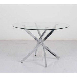 MESA COMEDOR RED. “F-497-2” 114cm CRISTAL/PAT.CROM
