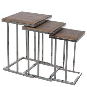 SET 3 MESAS AUX. MADERA PATASMETAL BLANCO, MADERA BLANCA