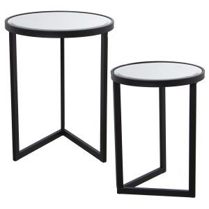SET 2 MESAS METAL NEGRO Y ESPESPEJO