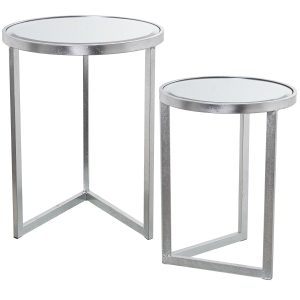SET 2 MESAS METAL PLATEADO Y EEJO