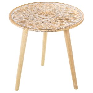 MESA AUXILIAR MADERA CALADA BLANCA, PATAS NATURAL