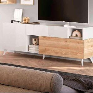 MUEBLE TV MONACO “209075-01K” BLANCO BRILLO-ROBLE