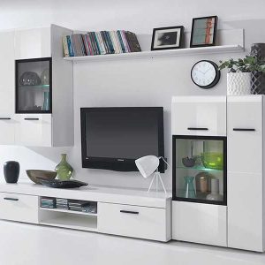 Mueble Salón TV Apilable “CAREX LED” BLANCO/BLANCO ALTO BRILLO