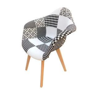 SILLA GH-603D PATCH WORK BLANCO/NEGRO PATA MADERA