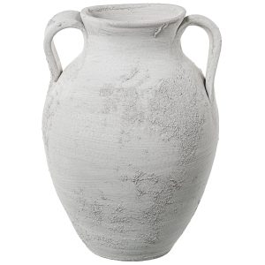 JARRÓN CERÁMICA C/ASAS 36CM BLANCO/GRIS RÚSTICO