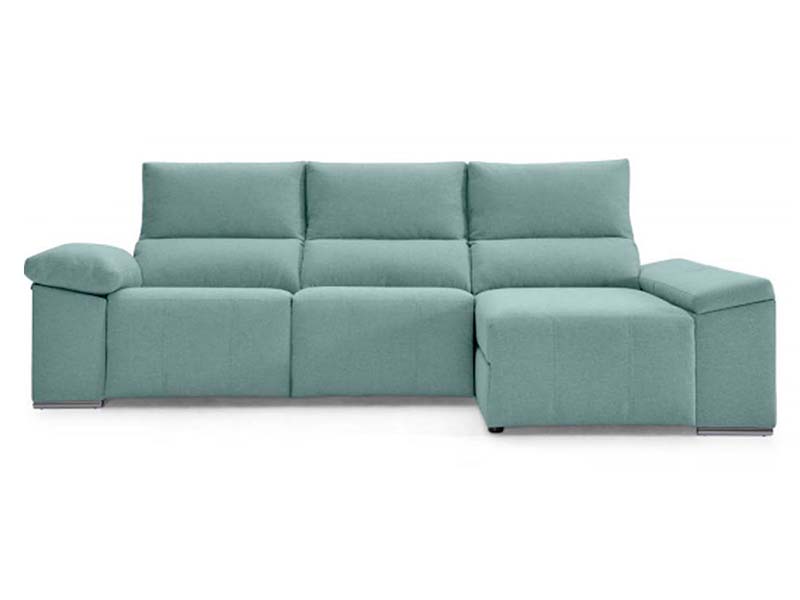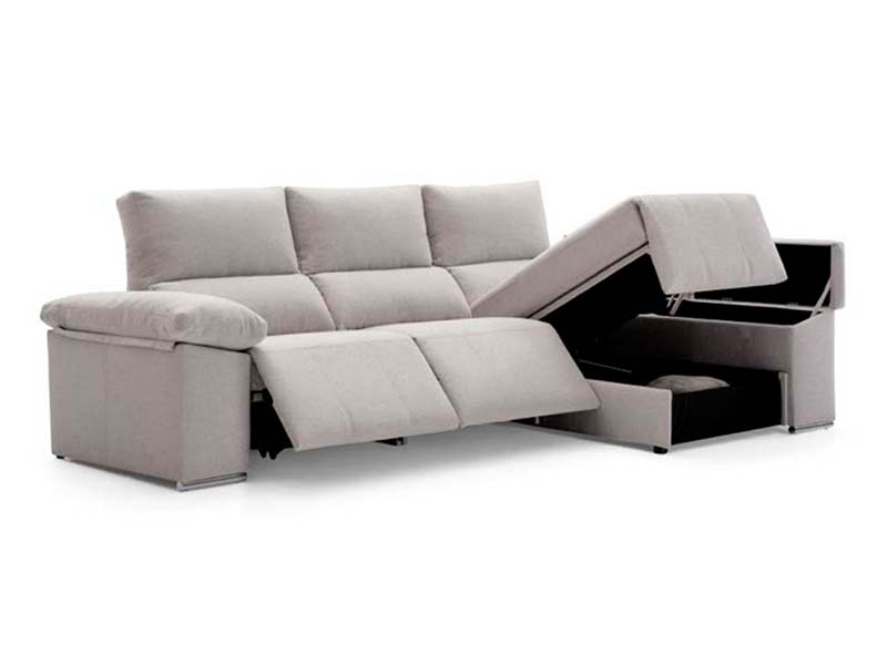 Sofá chaiselongue eléctrico con asientos extensibles.Estructura: Madera de pino con costado DM y aglomerado de 1ª calidad, reforzado con escuadras. Las estructuras y los brazos van revestidos con espuma de poliuretano.Mecanismos: Motor apertura máxima. Base Respaldo: Relleno de 50% de fibra hueca siliconada y 50% goma picada 1ª calidad, desenfundable individualmente, cabezal reclinable 10 posiciones.Incluye: Arcón en brazos chais longue, arcón en la chaise longue, puff en el brazo , respaldo reclinable 10 posiciones.Patas: cromadasMedidas: Fondo: 98 cm Altura: 103 cm Largo: 294 cm Brazo sofá: 30 cm Brazo chaiselongue: 30 cm