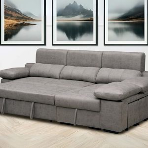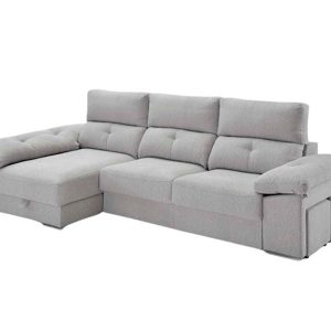 ESTRUCTURA:Madera de pino con costado DM y aglomerado de primera calidad, reforzado con escuadras. Las estructuras y brazos van revestidos con espuma de poliuretano.SUSPENSIÓN:Bastidor de madera de pino con sistema de muelle ZZ.MECANISMO:Deslizante carro punto a punto.ASIENTOS:Núcleo de poliuretano 33 kg. capa superior 35 SS+ Fibra hueca siliconada.RESPALDOS Y BRAZOS:Relleno del 50% de fibra hueca siliconada y 50% goma picada primera calidad desenfundable individualmente.INCLUYE SIEMPRE:Arcón en la chaise longue, reclinable 10 posicionesPATAS CROMADASVarios tapizados disponibles.Medidas: 270cm ancho x 100cm alto x 100/155 cm fondo.