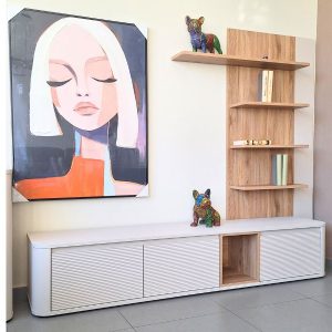 Composición de salón N-213 de la colección New Royal de la firma nacional Kazzano. Este moderno salón se compone por varios módulos colgados. Sensación de ligereza y amplitud.La colección New Royal de Kazzano se compone de una amplia gama de mobiliario para salas de estar, comedores y pequeños espacios. Caracterizada por sus diseños contemporáneos, New Royal Collection engloba composiciones modulares, aparadores, muebles de televisión, librerías, mesas y recibidores para el hogar.