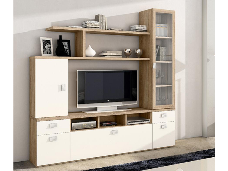 Composición de salón de 2 metros. En color cambrian con los frentes en color blanco.