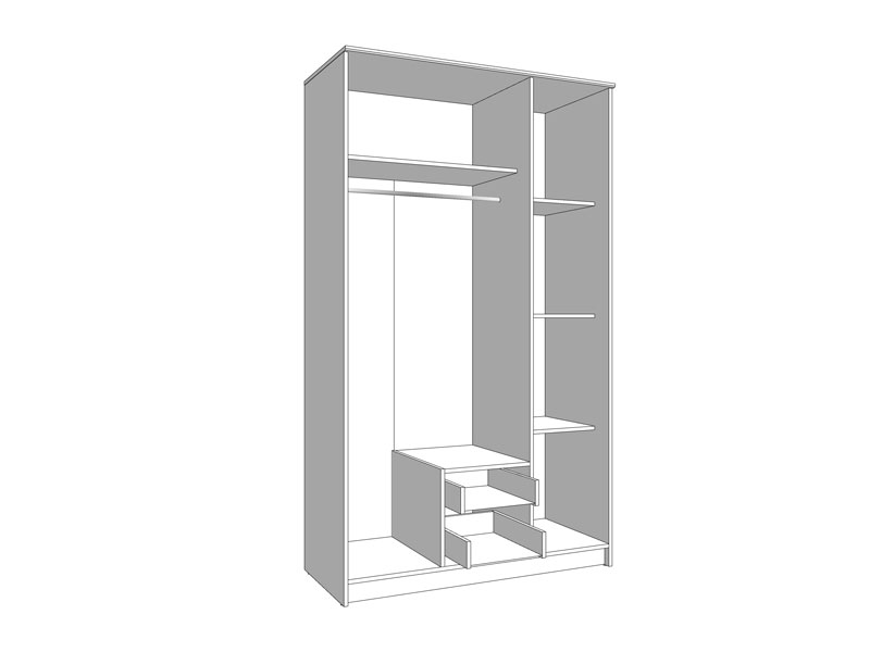 El elegante modelo de armario de tres alas HANA 3K2FO, en diseño blanco, con barra, tres o cuatro estantes y dos cajones, contribuirá a la organización funcional del ambiente. El espejo en la sección central del armario HANA 3K2FO enriquecerá estéticamente el espacio habitable.Medidas:120 cm ancho x 52 cm fondo x 205 cm alto