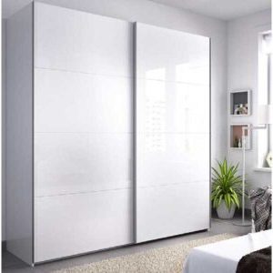Armario de 2 puertas correderas lisas en color natural. Tirador redondo embutido. Incluye barra de colgar y estante superior. Medidas: Alto 204cm, Ancho 100cm y Fondo 50cm. Este producto se entrega en kit. Dispone de manual de montaje incluido.