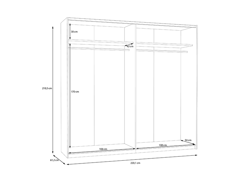 Armario de 2 puertas correderas en color blanco mate.-MEDIDAS:ANCHO 220CM.ALTO 210,50CM.FONDO 61,20CM.