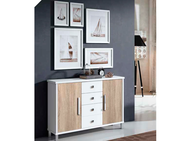 Consola 2 puertas y 4 cajones en color cambrian combinado con blanco.Medidas: 108cm ancho x 98cm alto x 28cm fondo.