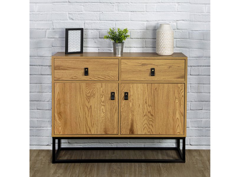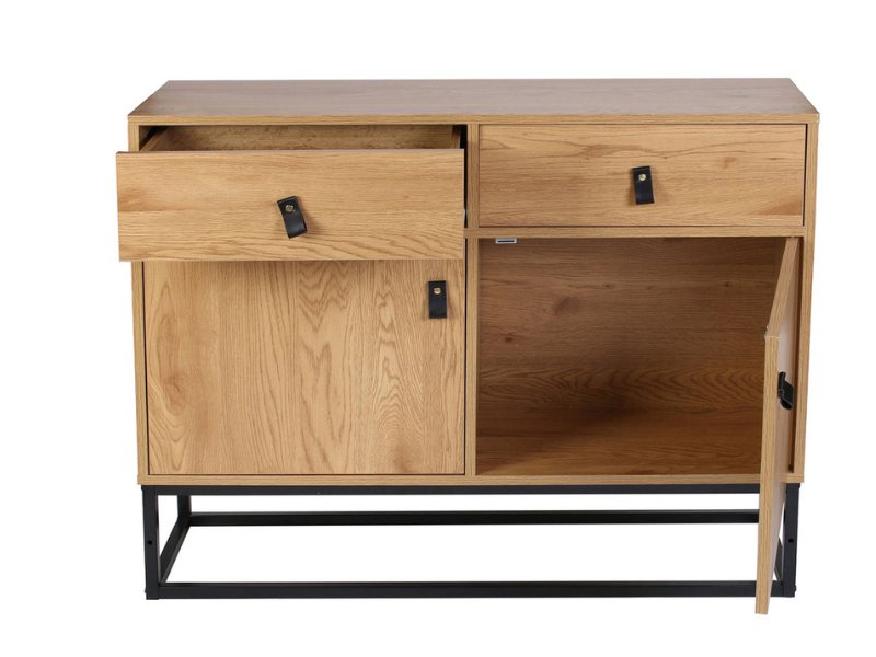 APARADOR ABBOTMueble con 2 cajones y 2 puertas de madera ymetal.Medidas: 100 cm ancho x 29 cm fondo x 80 cm alto.