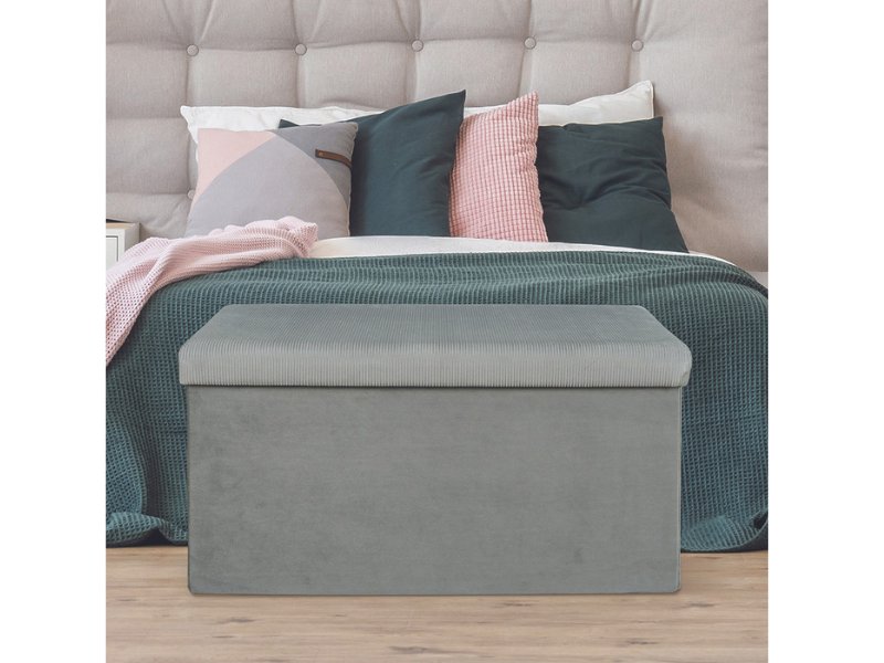 BANCO-PUF PLEGABLE GRIS TERCIOColor gris ratón.Con el encanto y la autenticidad del terciopelo.Encaja en cualquier habitación.Ideal para guardar cosas.Resistencia a la sentada de 110 kgMedidas: 77 cm ancho x 38 cm fondo x 38 cm alto.