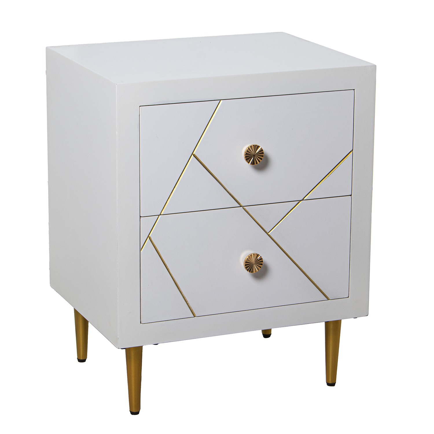 MESA DE NOCHE MADERA 2 CAJONESRO C/TONOS ROJOS, FILO DORADO