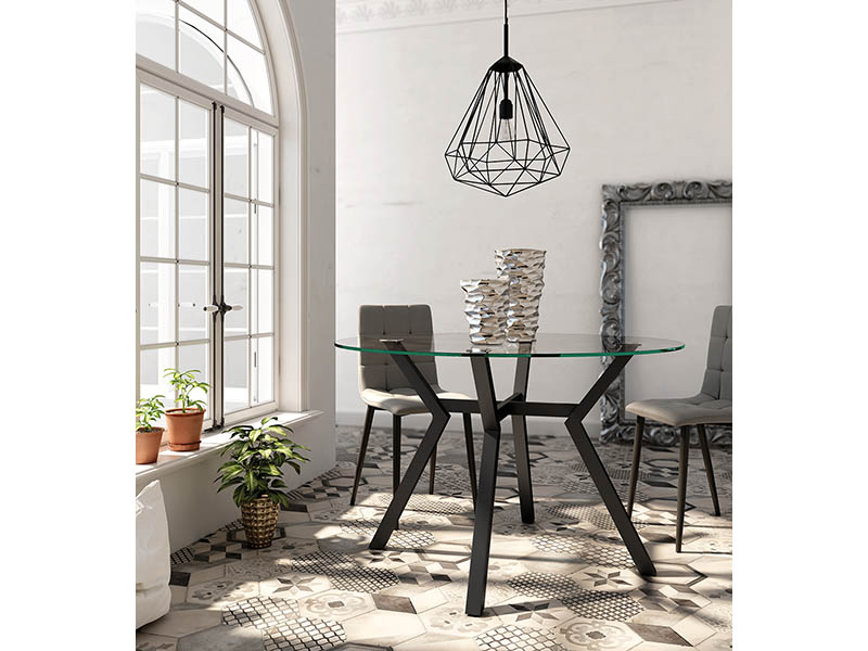 Mesa de comedor fija! Sus patas metálicas negras le dan una apariencia moderna y resistencia duradera, mientras que el sobre de cristal de 12mm de espesor agrega brillo y luminosidad al ambiente. Perfecto para cenas familiares o reuniones entre amigos, esta mesa es la adición perfecta para cualquier hogar.