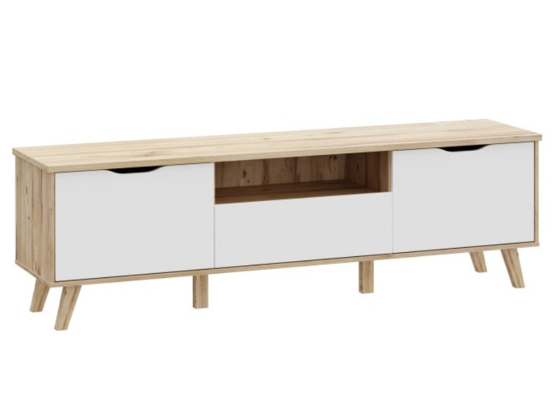 Dimensiones: ancho 179,1 cm, alto 54,3 cm, fondo 42 cm.Muebles realizados en una eficaz combinación de decorados: Tablero de Roble / Blanco.