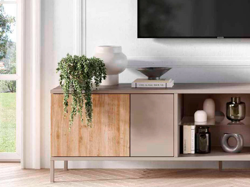 Mueble de TV 3 puertas en color Cashmere – Roble Cádiz.Medidas: 160cm ancho x 59cm alto x 43cm fondo.