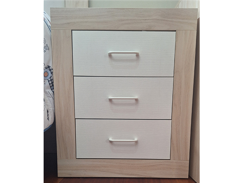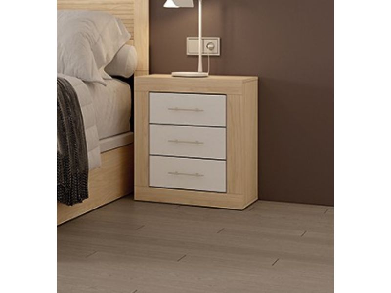 Mesita de 3 cajones en color alpin.Cajones y tiradores en color blanco.