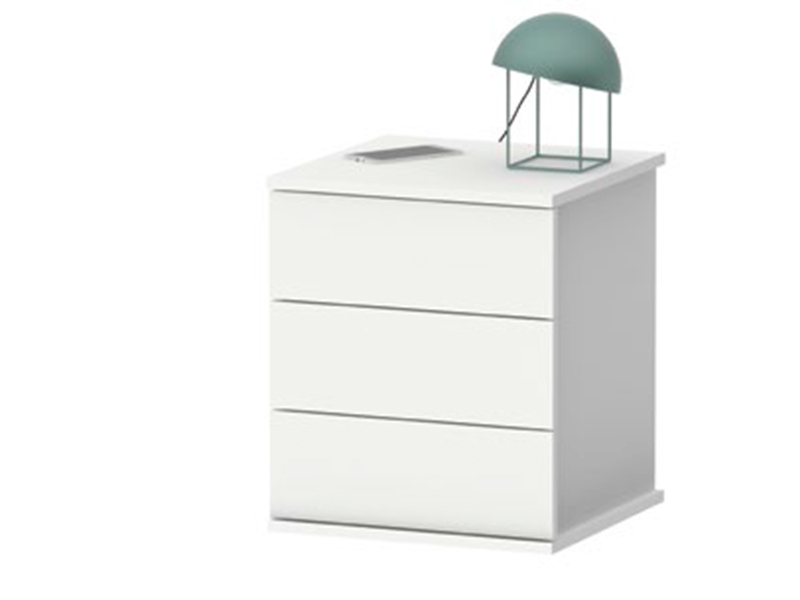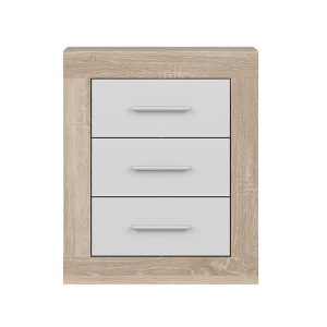 Mesita de 3 cajones en color blanco.Medidas: Ancho 41cm, Fondo 40cm y Alto 48,5cm.Este producto se entrega en kit. Dispone de manual de montaje incluido.