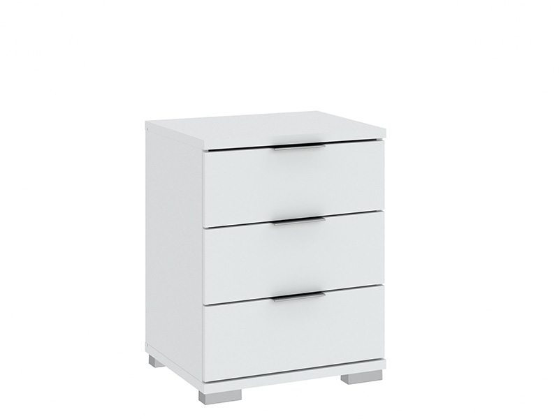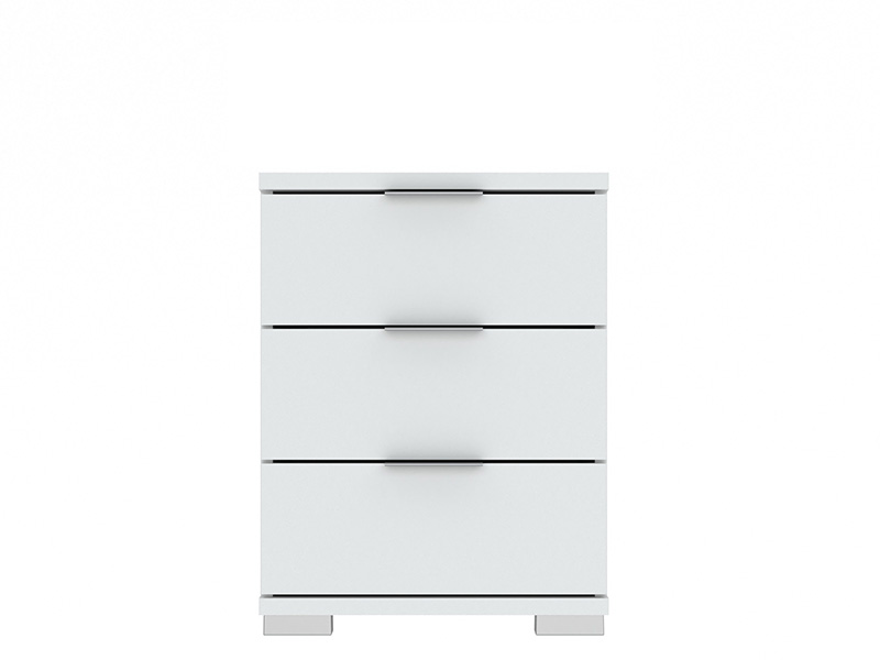 Mesita de 3 cajones en color blanco.Medidas: 46cm ancho x 42cm fondo x 61cm alto.