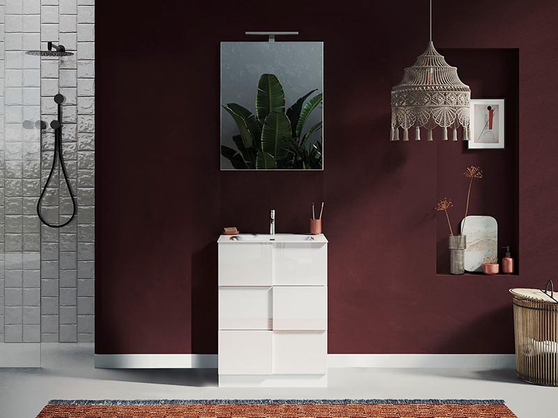Mueble de baño de 60cm con 3 cajones.Diseño moderno acabado en blanco brillo.Espejo y griferia no incluidos.