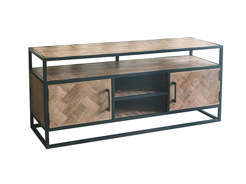 Mueble de TV de 2 puertas fabricado en madera y hierro. Medidas: Ancho 137cm, Fondo 40cm y Alto 60cm.