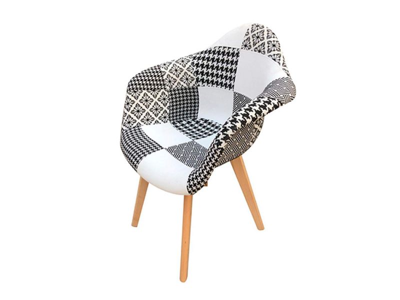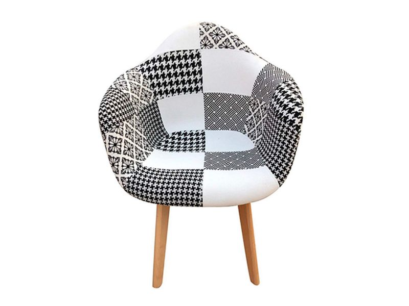 Medidas: 57x63x83cm.Tapizado en tela.Color patchwork blanco/negro.Patas madera.