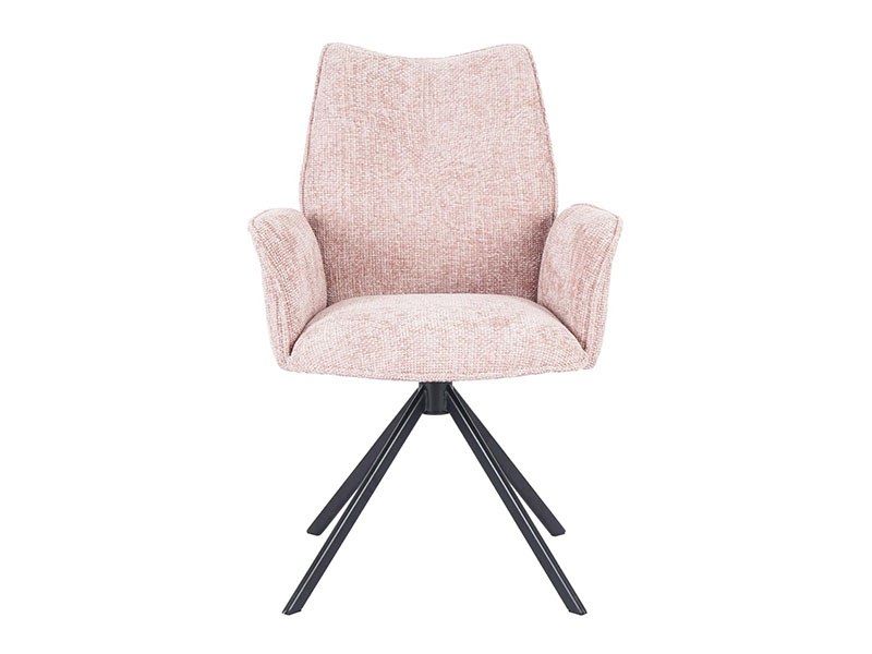 Dimensiones: 63 (ancho) x 62 (fondo) x 93 (alto) cm.MaterialesTapizada en tela de color rosa.Mecanismo giratorio 180º con retorno automático.Patas metálicas acabado en color negro.