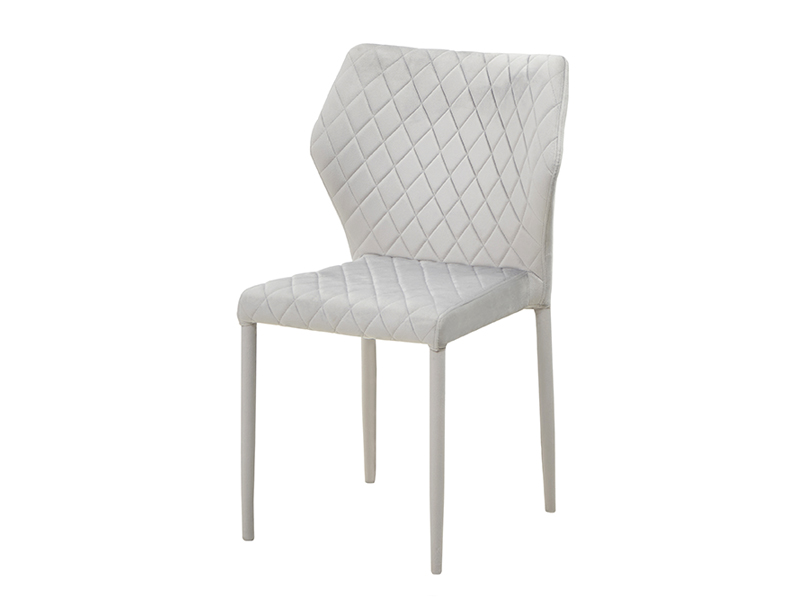 Silla tapizada en Velvet color gris claro.Estructura montada y soldada con patas metálicas tapizadas a juego. Diseño asiento y respaldo de rombos.Medidas: Ancho 50cm, Fondo 48cm y Alto 86cm.
