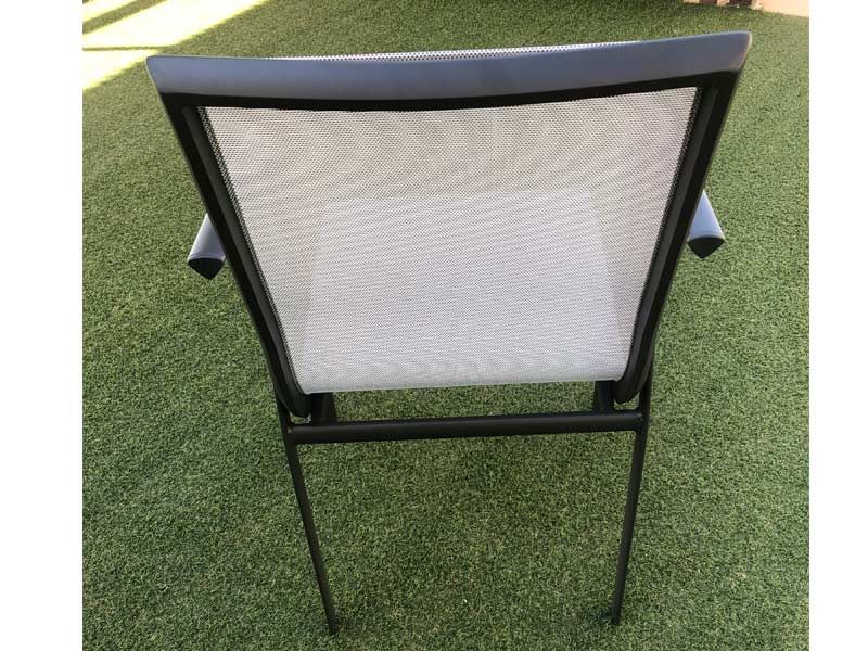 Sillón aluminio de color antracita con textilene en color claro. Brazo recto.Medidas: Ancho 66cm, Fondo 56cm y Alto 93cm.