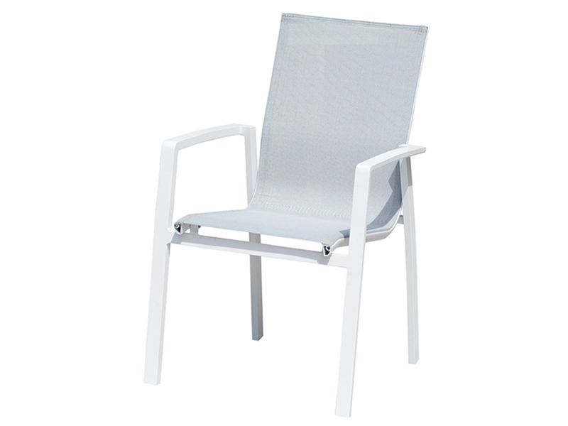 Sillón aluminio de color blanco con textilene en color claro. Brazo recto.Medidas: Ancho 66cm, Fondo 56cm y Alto 93cm.
