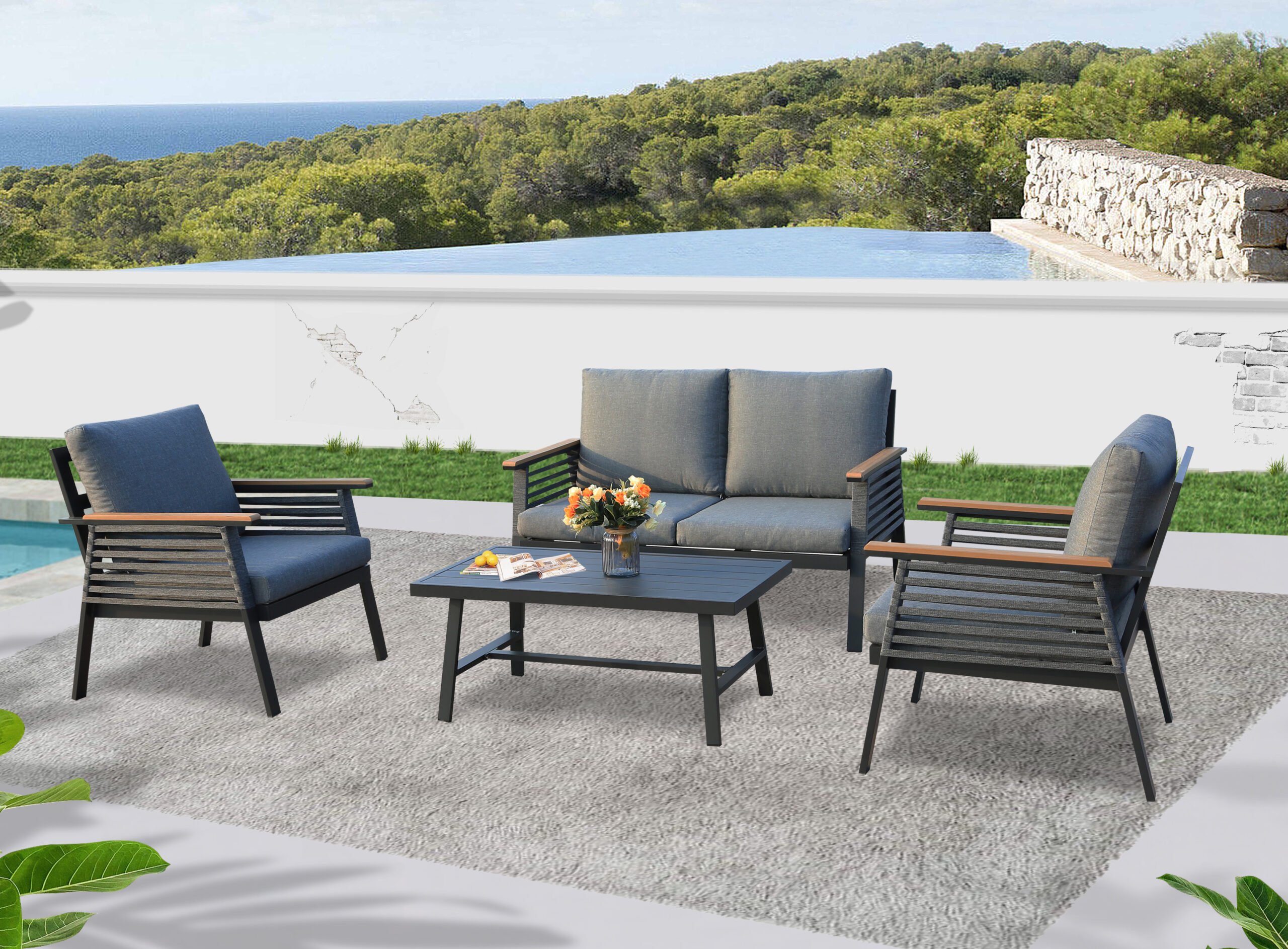 TRESILLO ALISON GFKD4826 + MESA CENTRO ALUM. GRIS. 1 sofá 2PL 130x78x80 cm + 2 sillones 70x78x80 cm + 1 mesa de centro 100×55,50×43 cm.