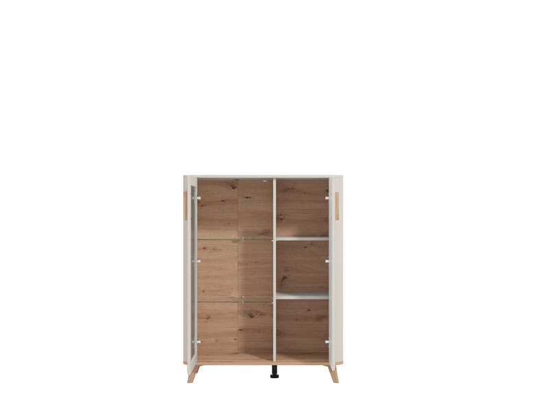 Vitrina baja de dos puertas con efecto roble y cachemira Darwen: elegante, funcional y perfecta para salas de estar modernas.La vitrina baja Darwen fusiona de forma refinada el diseño contemporáneo con la practicidad cotidiana. Con un suave acabado cachemir y cálidos detalles artesanales con efecto roble, esta atractiva vitrina es una solución excelente para los amantes de los interiores modernos. Diseñada para realzar el espacio de su sala de estar, cuenta con una puerta sólida y una puerta de exhibición con frente de cristal, cada una con estantes cuidadosamente distribuidos para acomodar tanto la decoración como los artículos esenciales.Parte de la colección de muebles de salón DARWEN, este mueble de perfil bajo ofrece un almacenamiento elegante, manteniendo una forma elegante y compacta. Sus bordes redondeados y patas altas y cónicas completan su aspecto moderno con un toque ligero y elegante.El color “Cashmere” es un tono suave, cálido y neutro inspirado en los tonos naturales de la lana de cachemira. A diferencia de los blancos brillantes o los tonos oscuros, el tono suave del cachemir disimula mejor el polvo, las pequeñas rozaduras y el desgaste diario. Un color atemporal que combina a la perfección con cualquier tipo de decoración.Características principales:Acabado cachemir y efecto roble artesanal para un contraste elegante y moderno.Una puerta de exhibición de vidrio y una puerta cerrada, ambas con prácticos estantes interiores.Diseño bajo y compacto: ideal para salas de estar, paredes decorativas o debajo de ventanas.Iluminación no incluidaParte de la colección de sala de estar DARWEN para un estilo interior unificadoBordes suaves y curvados y patas elevadas para una sensación contemporánea y aireada.Construcción duradera con elegantes detalles de acabado.Dimensiones: Ancho 90cm, Fondo 40cm, Alto 116,5cm