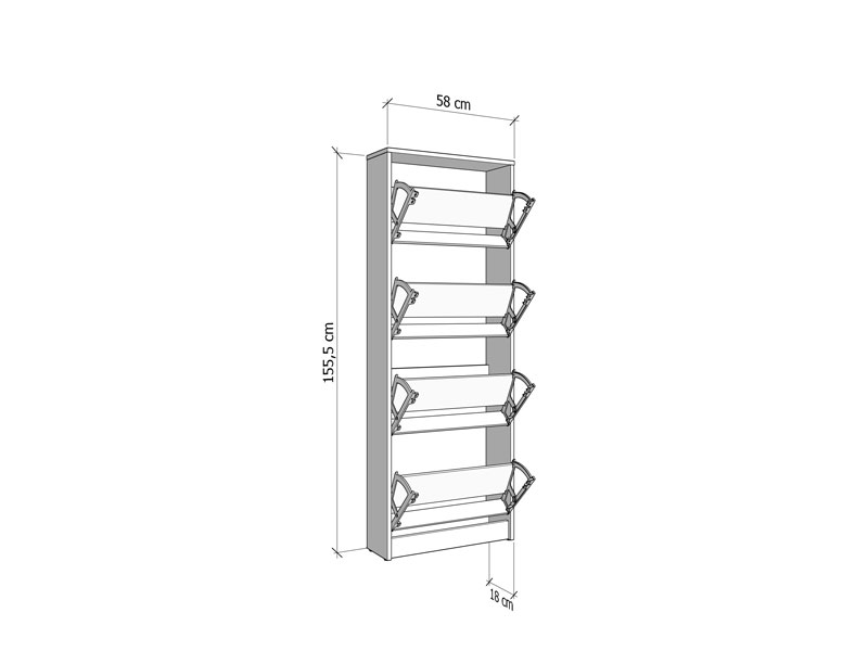 El zapatero BASE 14, en diseño blanco opaco, dispone de cuatro estantes para guardar el calzado de temporada y, gracias a sus dimensiones, es una solución funcional para decorar muebles de recibidor más pequeños.Ancho:58,0 centímetrosLongitud:18,0 centímetros.Altura:155,5 centímetros.