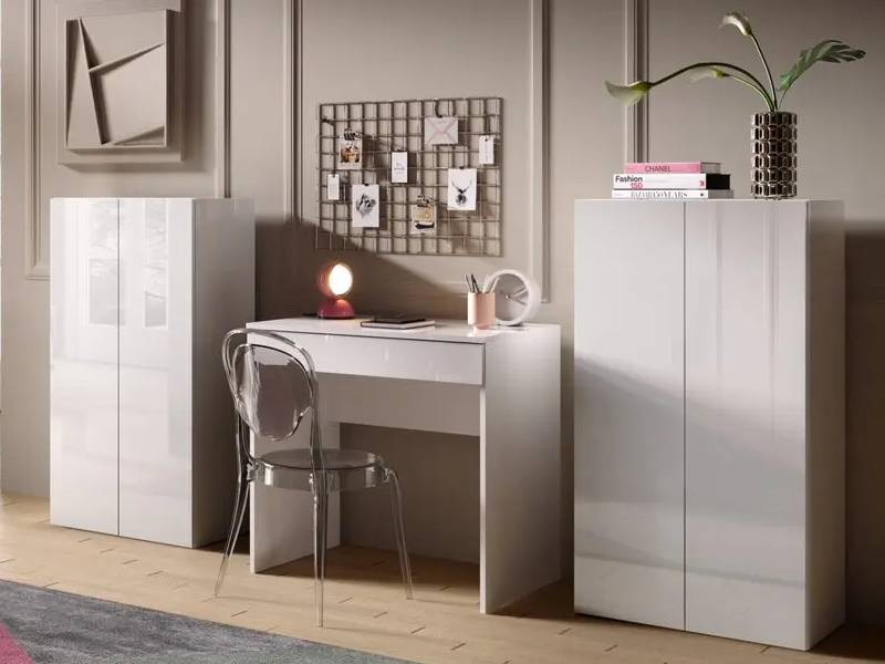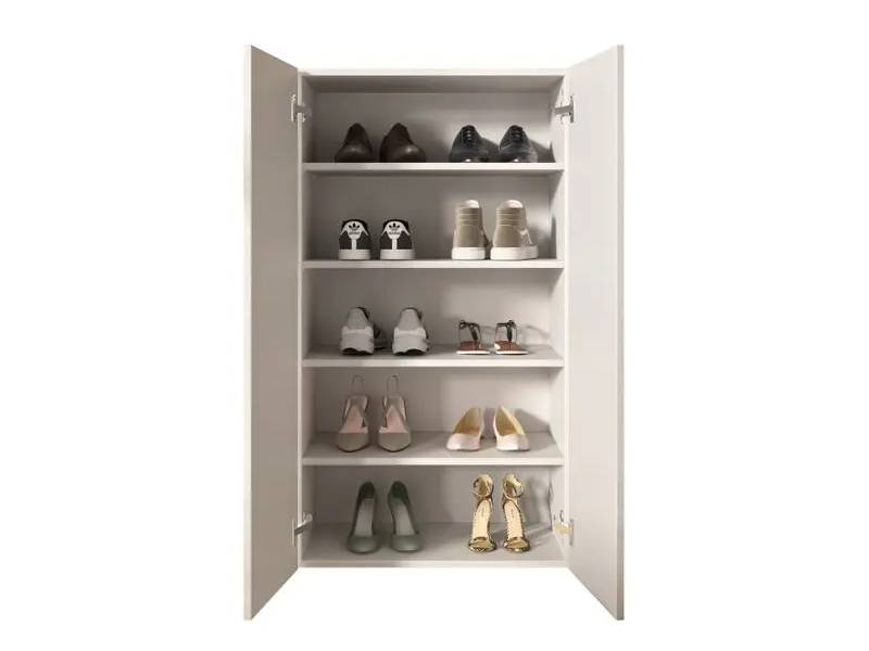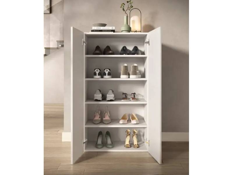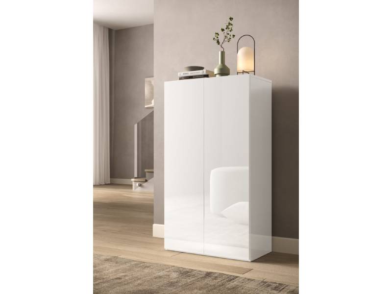 Zapatero de 2 puertas con 5 huecos. Acabado claro brillante.Medidas: 63x116cm.